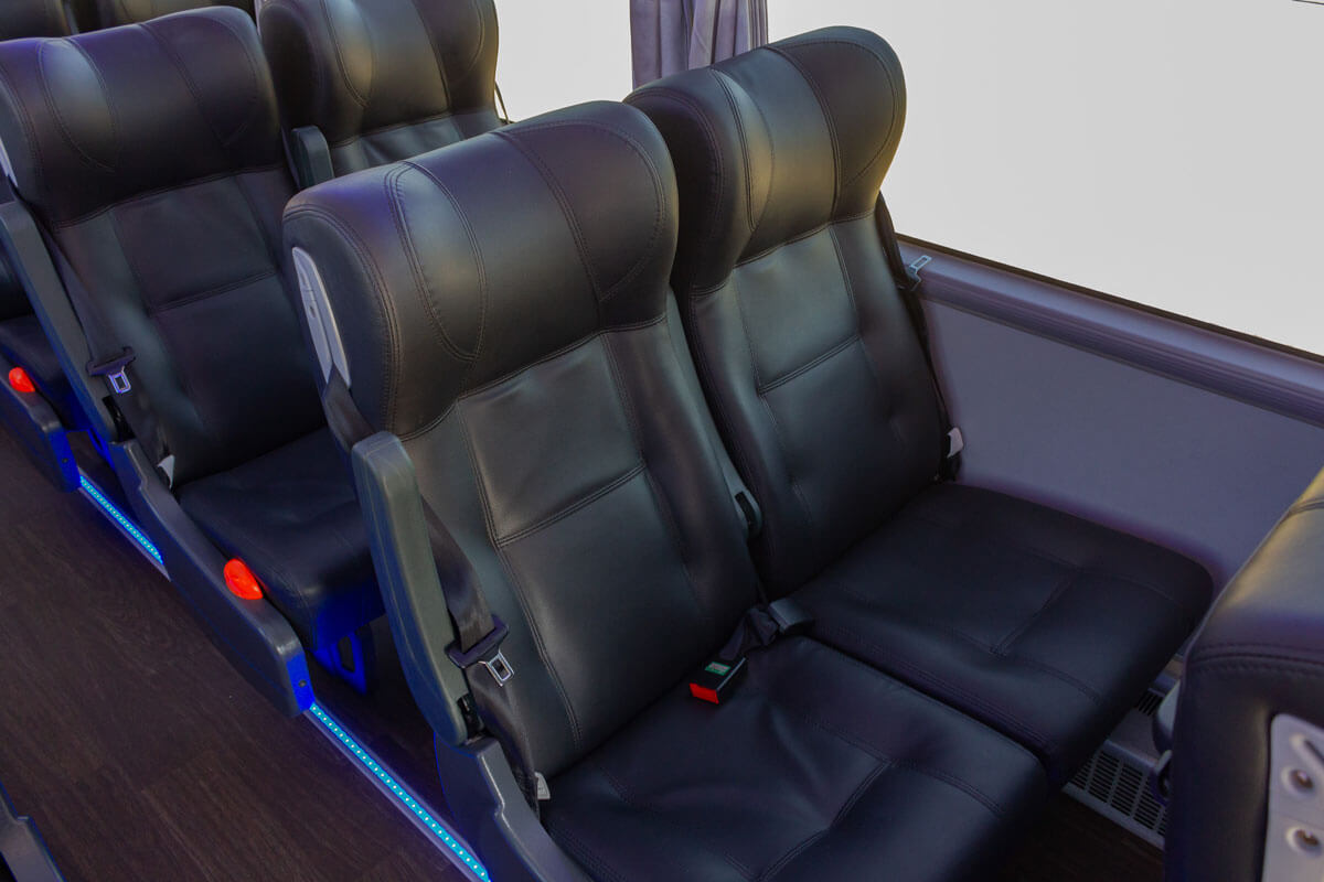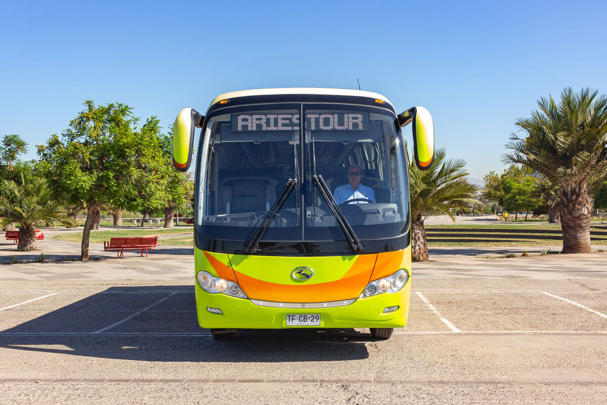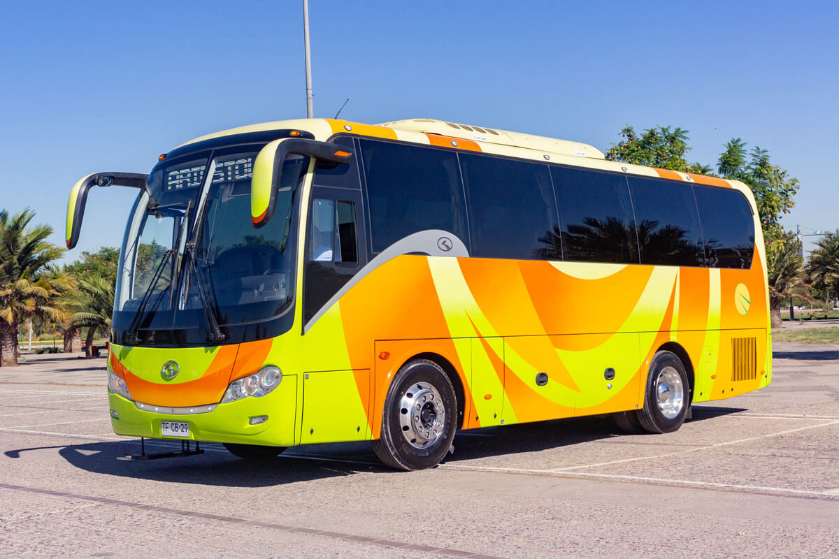 Bus de 9 mts para 30 pasajeros cómodos en butacas de cuero, es el vehiculo apropiado para visitar donde los buses grandes no logran llegar es ideal excursiones de dia completo en la Cordillera de los Andes o para la visitas de los cerros en Valparaíso.